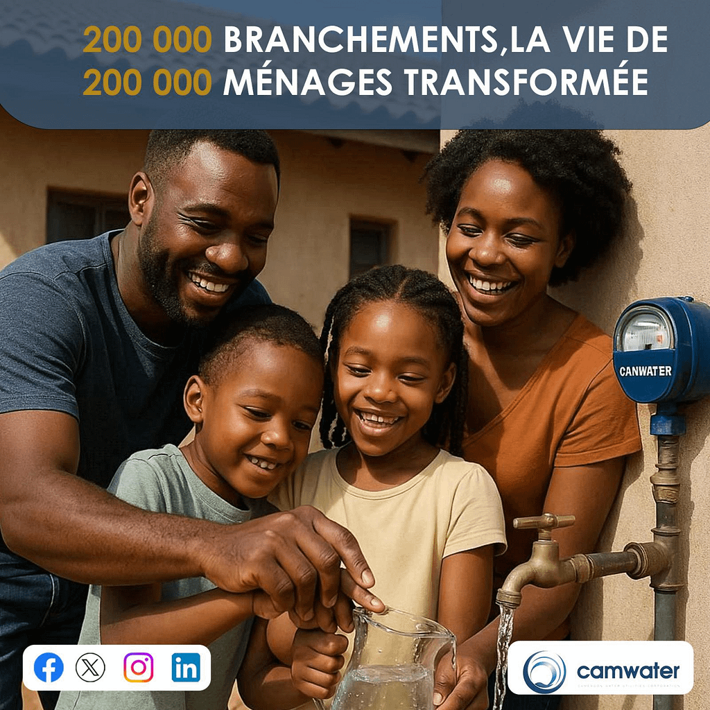 La CAMWATER poursuit son engagement à rapprocher l’eau potable des foyers camerounais grâce à la grande campagne des 200 000 branchements neufs.