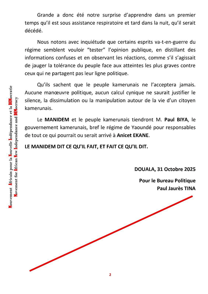 Selon des sources concordantes, Anicet Ekane est toujours vivant quoique malade et en détention au Secrétariat d’Etat à la défense (SED).