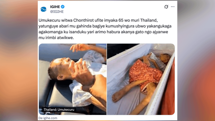 Son frère cadet a expliqué que sa sœur était alitée depuis deux ans et qu’elle avait été retrouvée « morte » à 2 heures du matin, dimanche 23 novembre, à son domicile de Phitsanulok (Thaïlande). Déclarée décédée par les secours, la grand-mère s’est finalement réveillée dans son cercueil, à l’arrivée du véhicule funéraire au temple de Wat Rat Prakhong Tham, dans la banlieue de Bangkok.