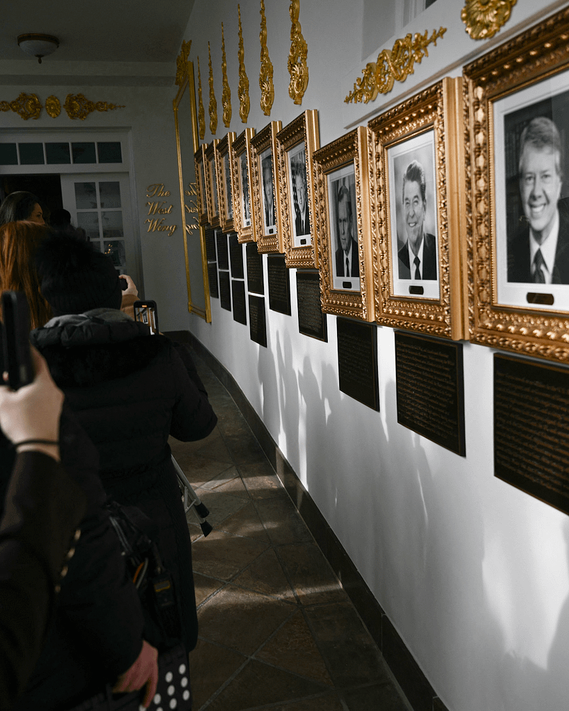 En plus de faire construire une gigantesque salle de bal, il a multiplié les ornements dorés et accroché des portraits de lui-même – allant contre l’usage selon lequel un président ne voit son effigie exposée qu’après avoir quitté le pouvoir.