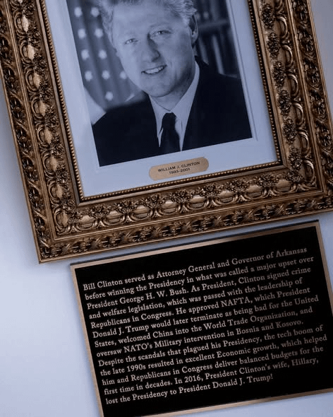 Le président républicain avait déjà fait jaser en installant sous une colonnade extérieure menant au bureau Ovale une galerie de portraits d’anciens présidents dans laquelle la photographie de Joe Biden est remplacée par celle d’une machine à signer.