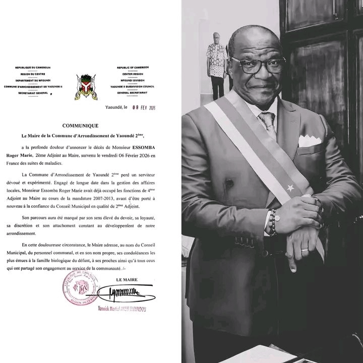 Le Maire de la Commune d’Arrondissement de Yaoundé IIème a la profonde douleur d’annoncer le décès de Monsieur ESSOMBA Roger Marie, 2ème Adjoint au Maire, survenu le vendredi 06 février 2026 en France, des suites de maladie.
