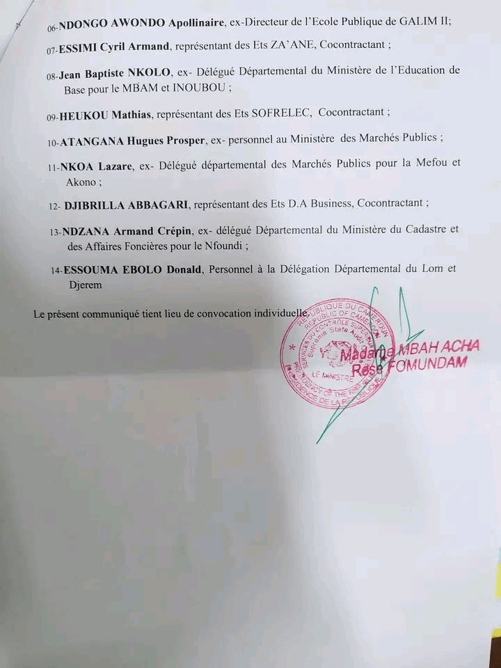 Dans une note publiée lundi, la ministre du contrôle supérieur de l’Etat Acha Mbah Fomundam convoque une dizaine d’ordonnateurs de crédits et autres dans ses services à Yaoundé.