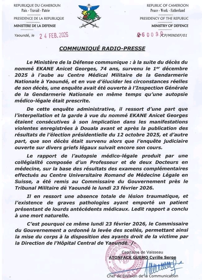 URGENT : Georges Anicet Ekane serait mort d’une mort naturelle selon l’autopsie réalisée par le pouvoir